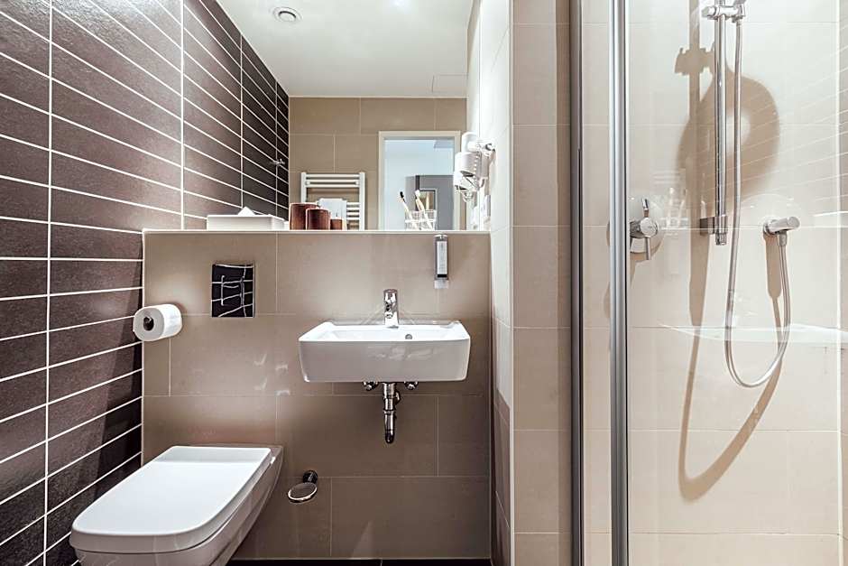 The double room offers air conditioning, soundproof walls, as well as a private bathroom featuring a walk-in shower and a hairdryer. The double room features parquet floors, a seating area with a flat-screen TV with cable channels, a wardrobe, a safe deposit box, as well as heating. The unit offers 1 bed.